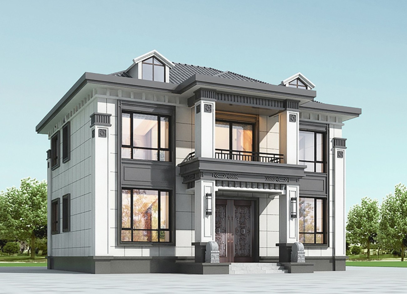 昆玉005 两层新中式(11.36x11.76米)-【易设计】