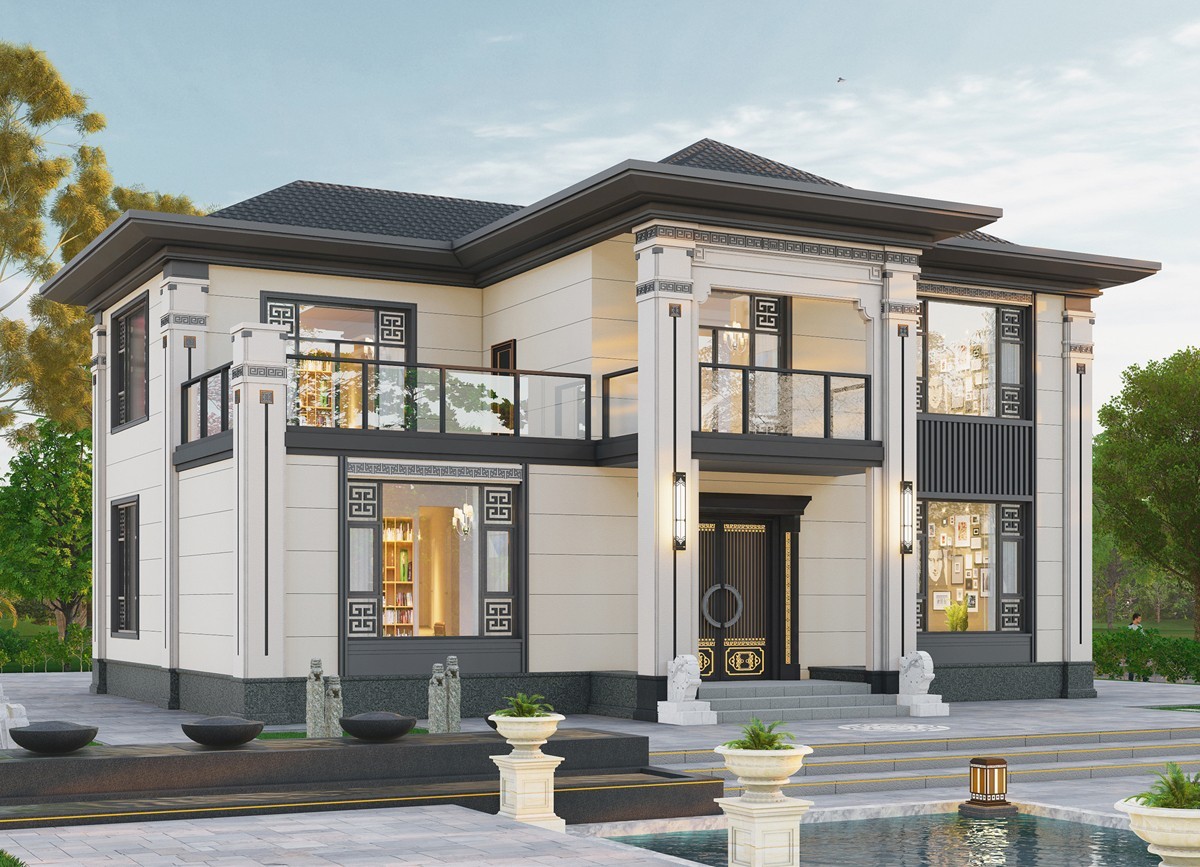 昆玉011 两层新中式(15.43x12.66米)-【易设计】