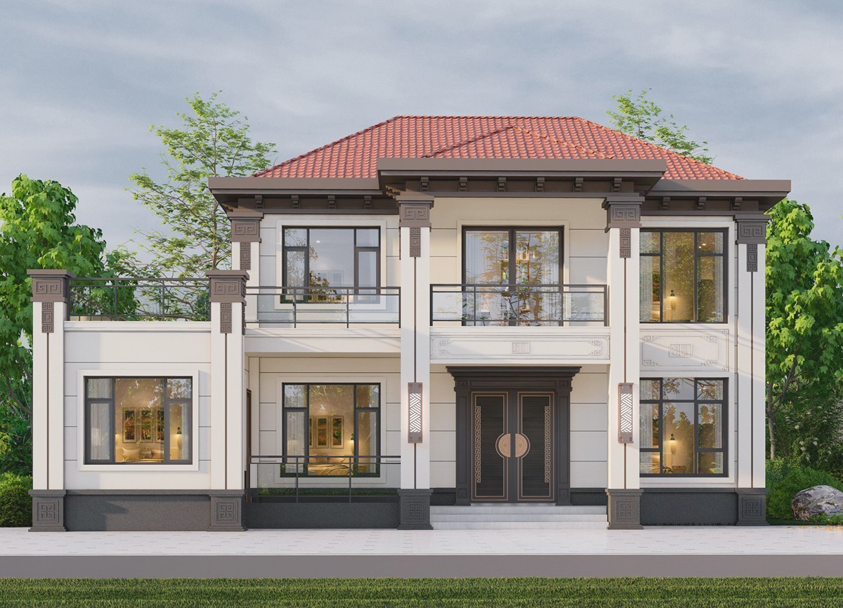 昆玉005 两层新中式(11.36x11.76米)-【易设计】
